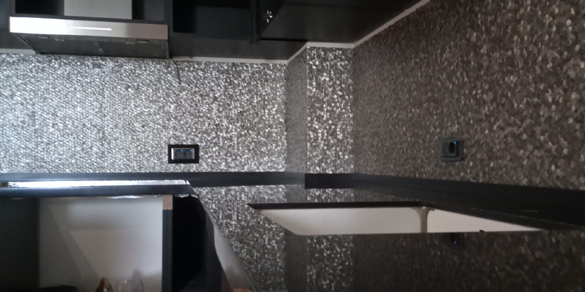 Deep Anthracite are particule de argint.Testele pe care le-am facut deja in spatiul nostru de productie pe noile materiale ne-au aratat ca ele se comporta excelent la termoformare, lipire si finisare, pastrandu-si nealterata textura si aspectul solid, mai ales cand sunt slefuite in profunzime.