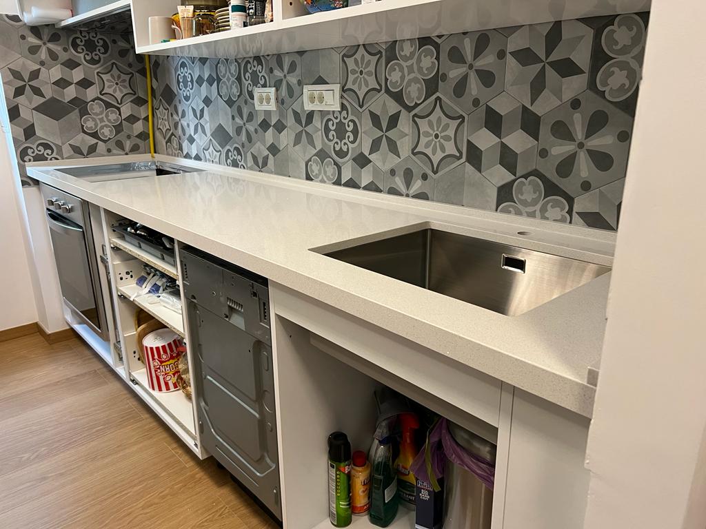 Proiect finalizat ( blat si mini bar ) quartz Polar White